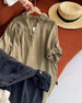 Blouse Effen Kleur Patchwork Bedrukt Oprolbare Mouw