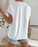 SPECIFICATIES Toptype: Bloes Stijl: Gewoontjes Materiaal: katoenblends Gelegenheid: Dagelijks Hals lijn: V-hals_V Patroon type: Effen kleur Mouw type: Normale mouw Mouw lengte: Korte mouw Pasvorm: Normaal Seizoen: Lente,Zomer Details: Lapwerk,Uithollen,Veter Pakket bestaat uit: 1 x bloes MAATTABEL (cm) Maat Borst Lengte S 97 65 M 101 66....