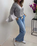 Top met V-hals, 3/4 mouwen en knoopjes op de rug
