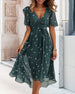 Jurk Kleurrijk Bedrukt Lantaarnmouwen Los