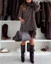 Elegante V-hals, veter- en lange mouwen leren jurk