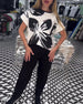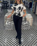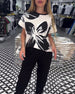 Eenvoudige casual jurk met korte mouwen en letterprint