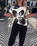 Vintage bedrukte set met revers en knoop