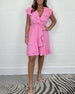 Gedraaide jurk met korte mouwen en V-hals