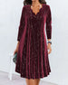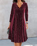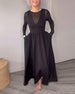 Modieuze effenkleurige pailletten patchwork jurk met lange mouwen