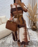 Retro contrasterende kleur jurk met ronde hals en lange mouw