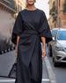 Glanzende Jurk Met Ronde Hals En Vleermuismouwen