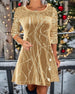 Modieuze effenkleurige pailletten patchwork jurk met lange mouwen