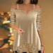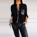 Mode effen kleur blouse met staande kraag patchwork en holle