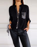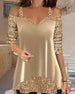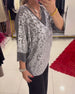 Blouse Met Paillettenpaneel En Lange Mouwen