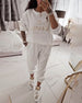 Blouse Effen Kleur 3D-Bloemen Met Vetersluiting