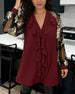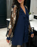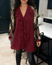 Elegante V-hals, veter- en lange mouwen leren jurk