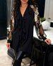 Effen Kleur Jurk Met Swingkraag En Patchwork