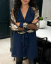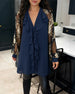 Stijlvolle luipaardprint jurk met patchwork rits en zak